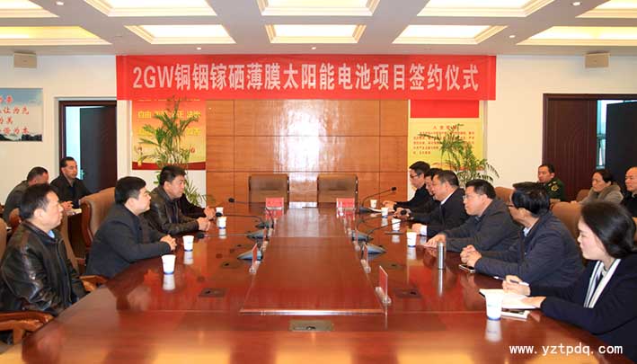 2016年12月2日,2GW銅銦鎵硒薄膜太陽能電池項(xiàng)目簽約儀式在寶應(yīng)縣經(jīng)濟(jì)開發(fā)區(qū)舉行??h領(lǐng)導(dǎo)王炳松、王逍霄、周玉寶、秦有芳、吳建志、顧錫芳以及中合三農(nóng)集團(tuán)有限公司運(yùn)營(yíng)總裁任懷崇等投資方出席簽約儀式。