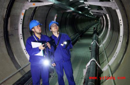 圖為工程驗收人員正在新落成的“電纜隧道”內(nèi)進行驗收。