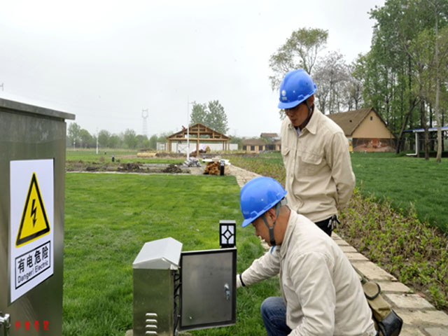2019年4月26日,江蘇高郵市供電公司龍虬供電所員工在位于龍虬鎮(zhèn)北側(cè)的龍虬莊遺址公園檢查路燈控制箱。“五一”將至,擴(kuò)建的龍虬莊遺址公園將于4月28日開(kāi)門(mén)迎客,高郵市供電公司組織人員前往公園開(kāi)展用電檢查,確保節(jié)日期間公園內(nèi)安全可靠用電。
