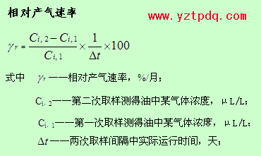 實踐證明,故障的發(fā)展過程是一個漸進的過程,僅由對油中溶解的氣體含量分析結果的絕對值很難確定故障的存在和嚴重程度。因此,為了及時發(fā)現(xiàn)雖未達到氣體含量的注意值,但卻有較快的增長速率的低能量潛伏性故障,還必須考慮故障部位的產(chǎn)氣速率。