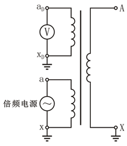倍頻感應(yīng)耐壓試驗接線如圖上所示,在二次繞組ax側(cè)施加倍頻電壓,從輔助二次繞組側(cè)測量。一次繞組試驗電壓按出廠電壓的85%進(jìn)行試驗,出廠值不明的按表1-1所示試驗電壓進(jìn)行試驗。倍頻感應(yīng)耐壓試驗電壓同工頻交流耐壓試驗的試驗電壓。