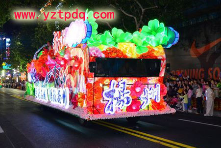 9月15日,上海旅游節(jié)開(kāi)幕大巡游在上海淮海路舉行,共有21輛花車和30支境內(nèi)外表演團(tuán)隊(duì)亮相。其中,揚(yáng)州選送的“運(yùn)河名城、精致?lián)P州”大型花車,展示了古城揚(yáng)州的迷人風(fēng)采。由揚(yáng)州市旅游局選送制作的揚(yáng)州花車首次以揚(yáng)州城市代表身份參加了2012上海旅游節(jié)花車巡游活動(dòng)。