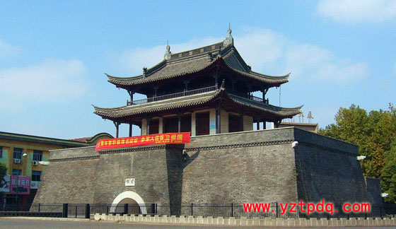 位于市區(qū)城河景觀帶,是儀征較為完整的古城遺址。建于明代成化23年(公元1487年),是儀揚歷史上漕運的交通要沖。樓體建在有拱門的通道的高臺基之上,面闊三間,兩層,層面鋪簡瓦,為帶徊廊的重檐九脊歇山頂式結(jié)構(gòu)建筑。有碑記兩方,一方為嘉靖甲申年間(公元1542年)記載鼓樓被辟為關(guān)王祀祠的情況;一方為嘉靖44年間(公元1565年)記載倭寇侵犯我東南沿海的史實。樓南有“小秦淮”之稱的儀城河,登樓四望,城市風貌盡收眼底。
