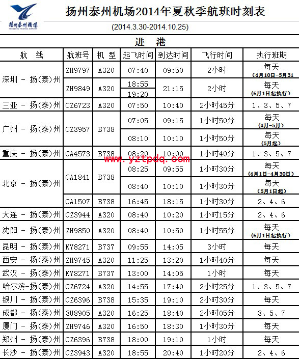 信息整理:揚州拓普電氣科技有限公司 信息來源:揚州泰州機場