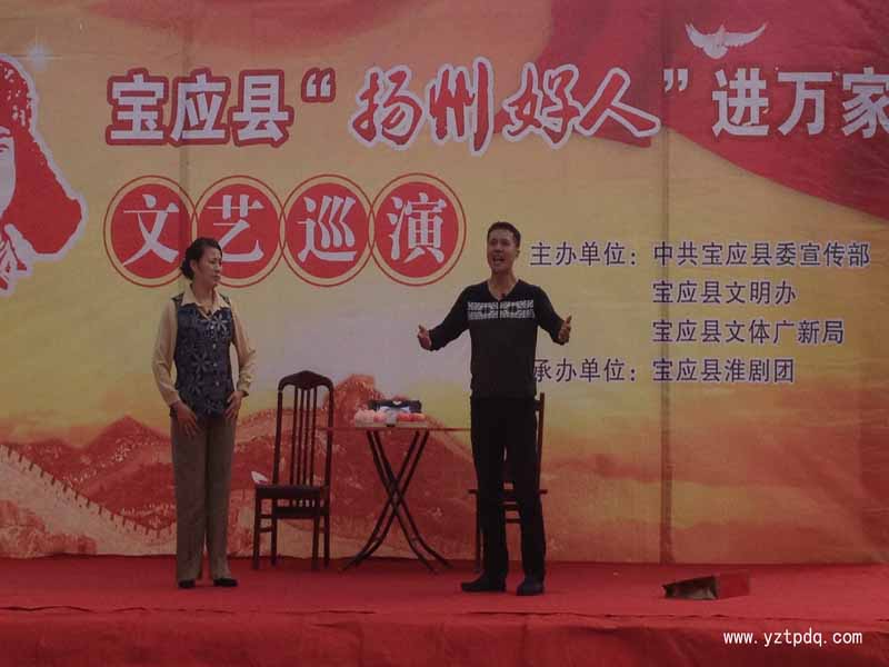 寶應(yīng)縣淮劇團(tuán)的演員們以農(nóng)民朋友喜聞樂見的淮劇形式,展現(xiàn)了愛崗敬業(yè)馬小梅、36年如一日照顧特殘軍人丈夫?qū)O云鳳、十年四救落水者的平民英雄張志成、用孝行和大愛撐起整個家的李順梅以及視腦癱小姑子如親妹、待多病的婆婆勝似親媽蔣長鳳等5位“揚州好人”的風(fēng)采。他們精彩的演出博得了現(xiàn)場觀眾的陣陣掌聲。全鎮(zhèn)近千名群眾觀看了演出,通過文藝巡演傳遞了正能量,弘揚了新風(fēng)尚。