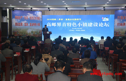 2016年10月28日上午,高郵市界首鎮(zhèn)舉辦特色小鎮(zhèn)建設論壇,為全鎮(zhèn)特色發(fā)展提供智庫先導,激發(fā)建設宜居、宜游、宜業(yè)特色小鎮(zhèn)的動力和活力,促進生產(chǎn)、生活、生態(tài)、文化的有機融合,進一步打響界首鄉(xiāng)村旅游品牌,走出一條具有界首特點的特色小鎮(zhèn)發(fā)展新路子。此次論壇也是高郵(界首)首屆鄉(xiāng)村旅游節(jié)系列活動的收官力作。鎮(zhèn)黨委副書記毛向前主持論壇議程。